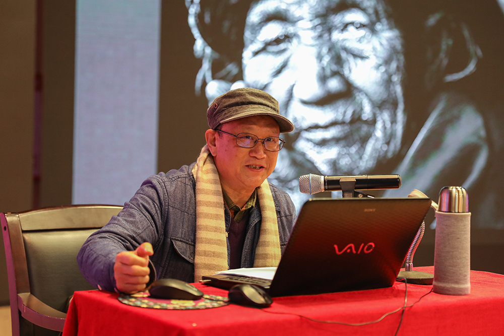 蒋志舟,中国摄影家协会德艺双馨艺术家,中国纪实摄影学会副会长,曾任湖南新闻图片画报社副编审、总编辑,现任湖南省老摄影家协会主席。他以《摄影创作导向与视觉语言把控》为题,结合本人作品和拍摄技巧进行讲解。