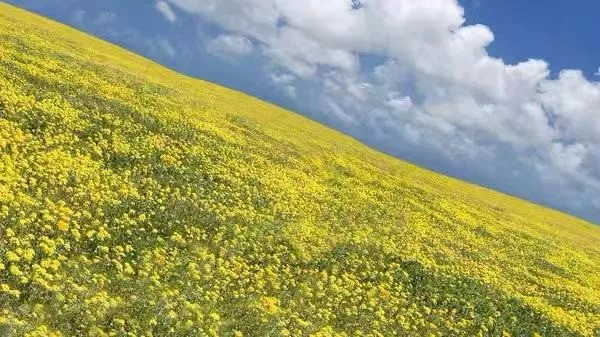 这时候大家的第一视觉落脚点应该是在花海中的小径,然后顺着小径延伸到天边。