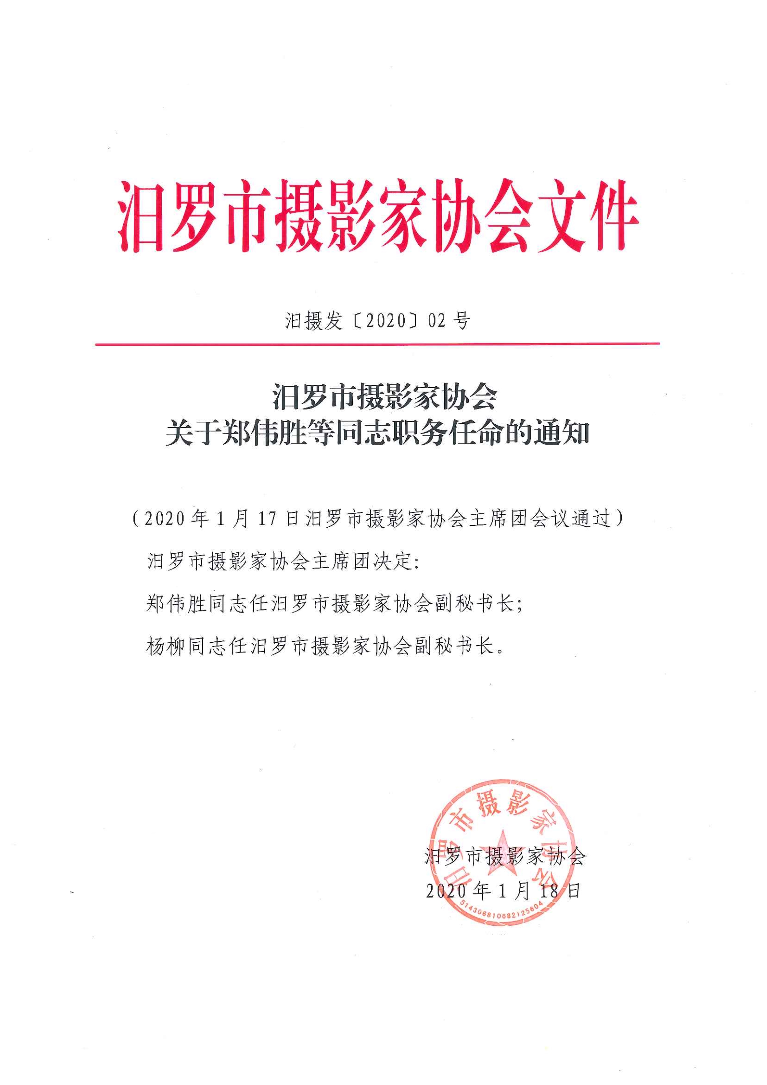 关于郑伟胜等同志职务任命的通知