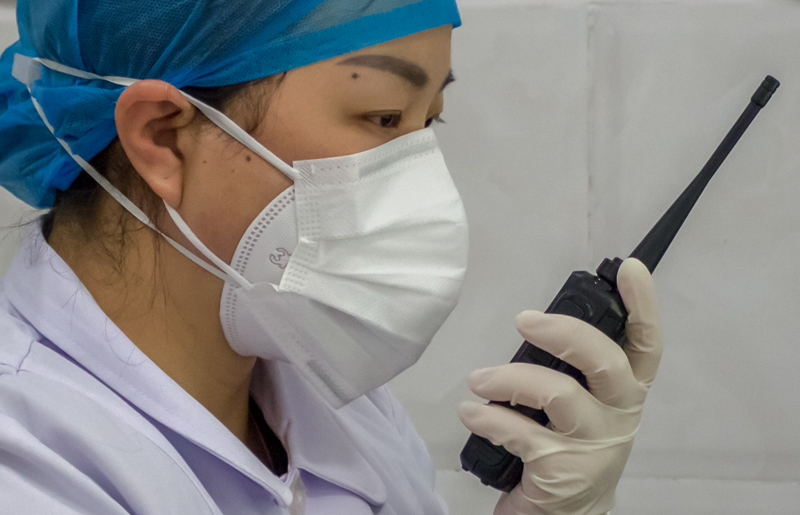 成伟医生通过对讲机收集来自病区的信息。