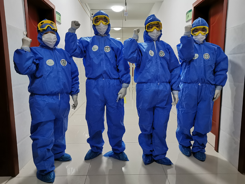 4名医务人员相互加油鼓劲。