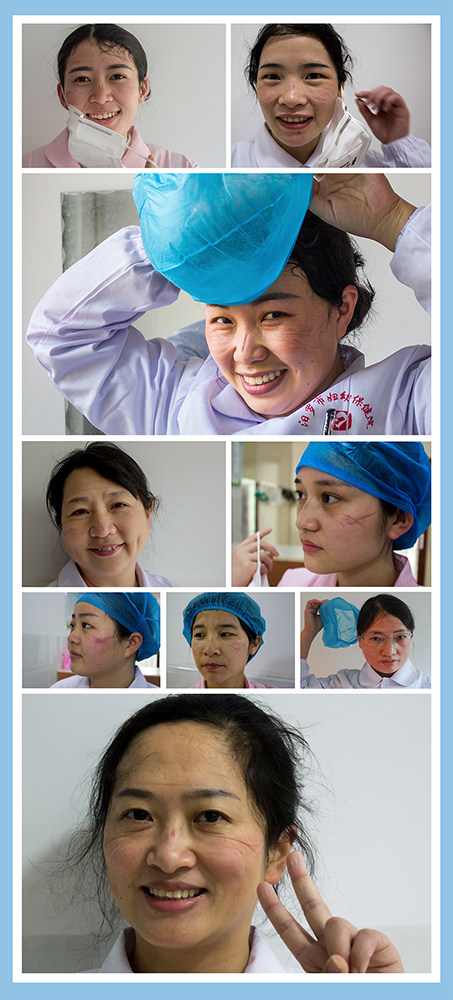 因长时间被口罩和护目镜压迫,脱下防护用具的医护人员, 脸上留下的深深勒痕让人心疼。但这些印记是这场战疫最美的风景!