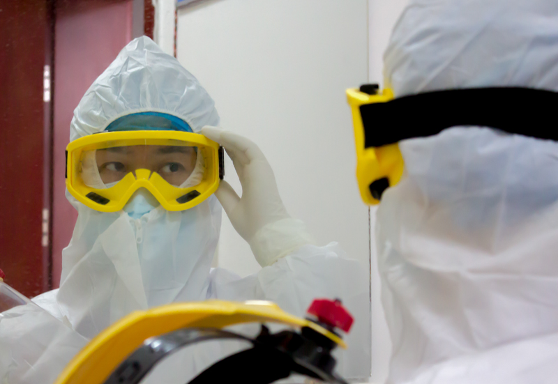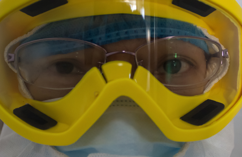 护士进入病区前整理护目镜,确保无皮肤外露。