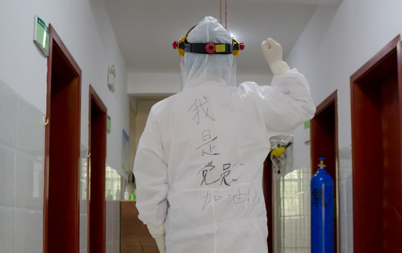 从防护服到纸尿裤,从手套、口罩到护目镜,一身“戎装”穿脱不易;脸上被口罩勒出一道道压痕,厚重、密闭的防护服内 “汗水湿透衣背”;一日三餐送餐,一天多次消毒,卫生保洁……他们克服了常人难以想象的困难,用热血和汗水扛起沉甸甸的责任。