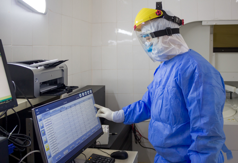 检验师在生化仪上申请项目。