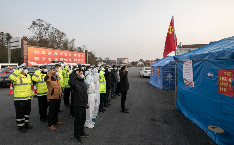 《誓言铮铮》许广高速汨罗北防控检查点全体党员重温入党誓词。