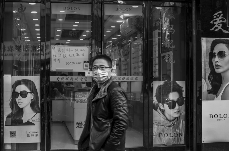 《谁更帅》眼镜店门口的宣传画上,帅哥美女们带着酷酷的墨镜,一个带着口罩的小伙走过。此时此刻,相比之下,还是带着口罩更帅一些。
