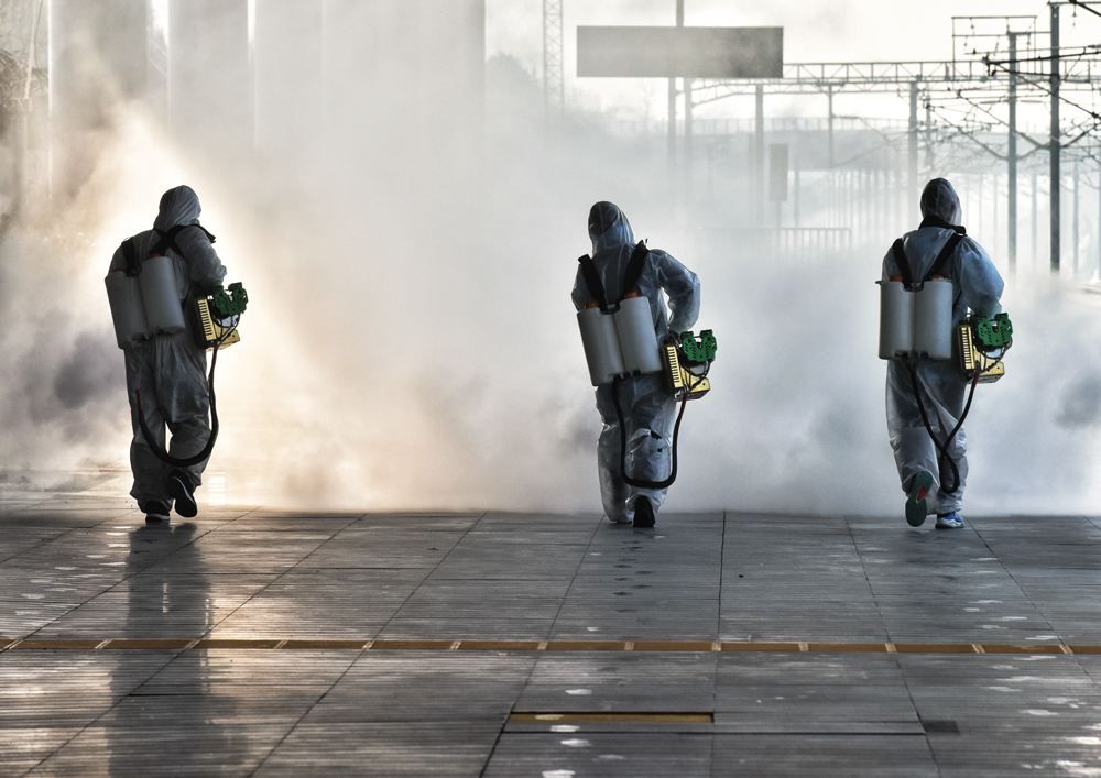 《逆行的脚步》2月4日,汨罗市蓝天救援队的志愿者在高铁汨罗东站义务消毒。欧阳建新摄