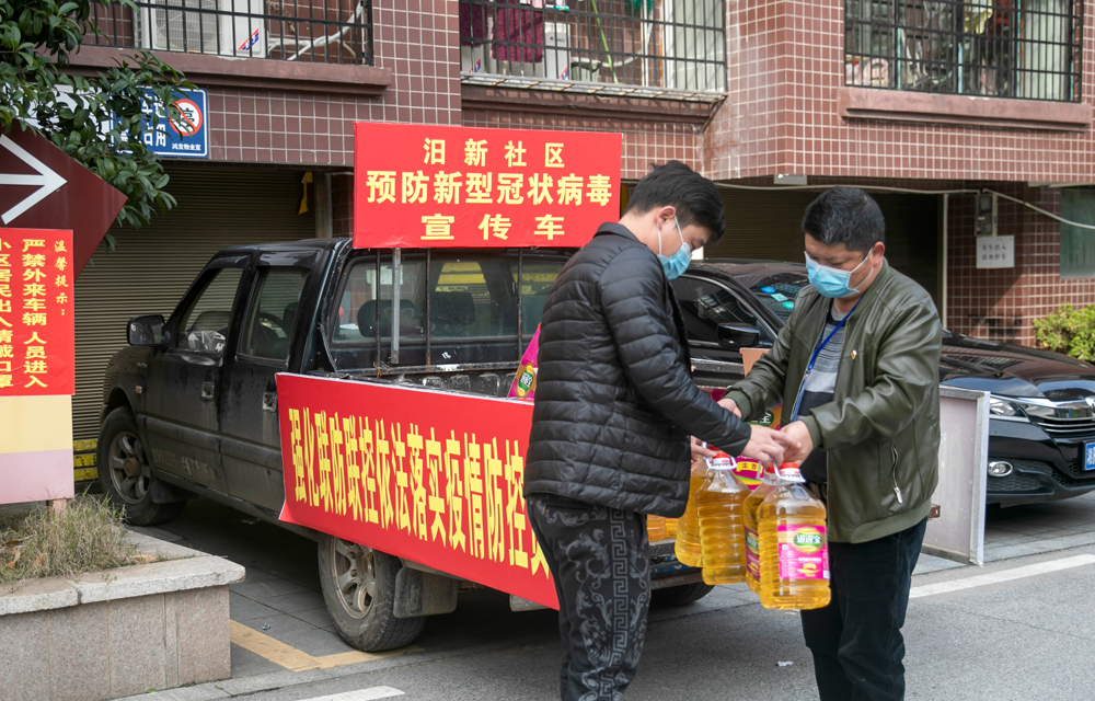 《暖心之物》归义镇汨新社区的工作人员积极参加“五个一”送温暖活动,将爱心物资送到低保户、武汉返汨人员和居家隔离人员家门口。余艳摄