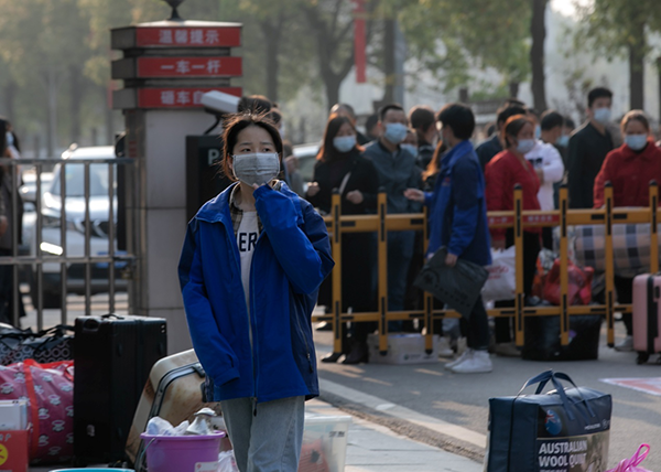 教学区门口的一道栏杆,将家长和学生分开。一边是家长对孩子不舍的目光,一边是学生为了未来拼搏的雄心。>>>
