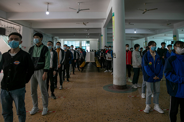 复课第一天,对于学生们来说,既兴奋又紧张,还有几分对家的依恋。兴奋的是回到久违的学校,见到了久别的老师和同学。紧张的是,马上就要开始二模考试了,来不及整理这些思绪,大家就投入到紧张的学习当中。>>>